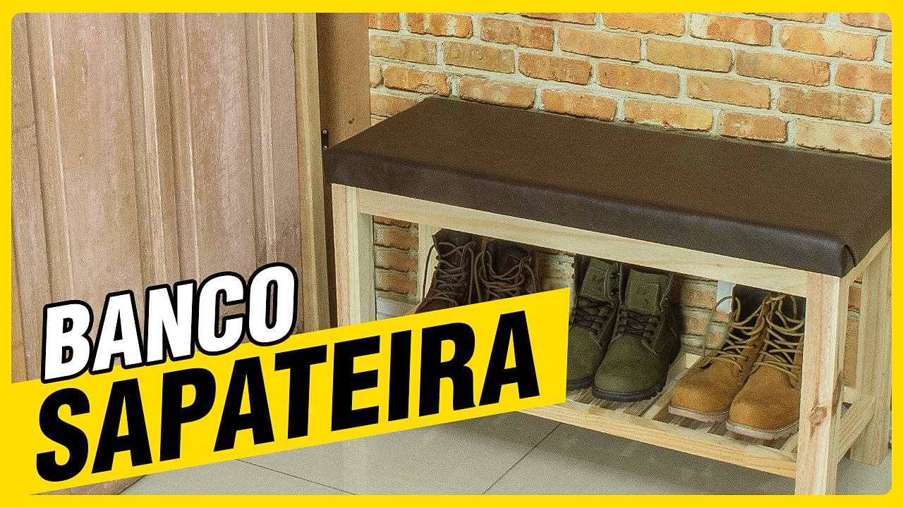 Convenci o Leandro e resolvemos fazer esse banco sapateira de madeira que ao meu ver resolve dois problemas de uma vez: você senta para calçar/descalçar e ainda organiza os pares na prateleira inferior. Neste tutorial, mostramos o passo a passo do nosso modelo com assento estofado, fácil de fazer e com acabamento caprichado.